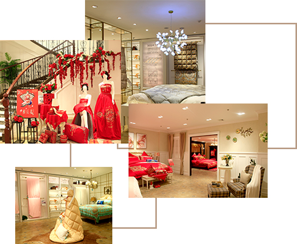 芯類產(chǎn)品一直以來都是家紡行業(yè)銷售的大頭, 為進一步提高和義店芯類產(chǎn)品銷售業(yè)績,維科家紡在芯類區(qū)設(shè)計上采用白色柜貨、鍍鈦金屬件、金屬玻璃柜的組合,讓整個芯類區(qū)更加透明亮。維科家紡主打的維科朵絨被、蠶絲被、石墨烯纖維被等都將在該區(qū)域以展床、垂掛、卷筒等不同形式集中展示。