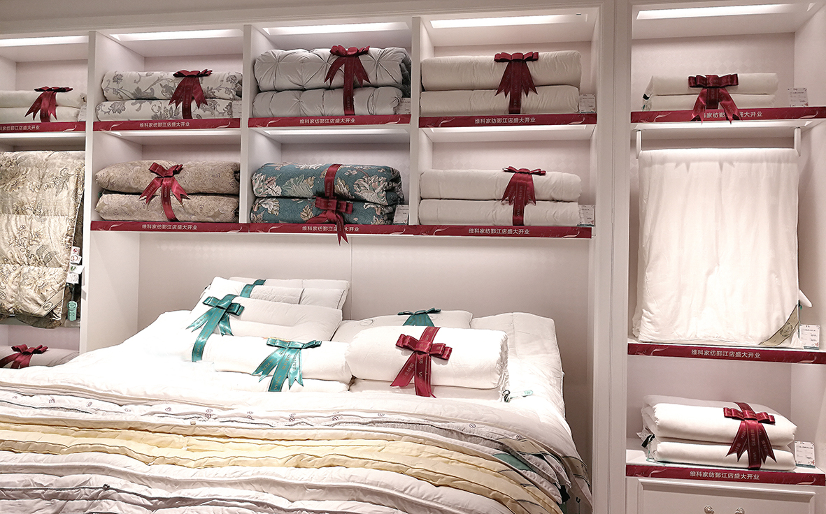 維科家紡鄞江店,面積近130平,地處鄞江鎮(zhèn)核心主干道四明西路,是通往龍觀、章水的必經(jīng)之路。經(jīng)過(guò)充分的市場(chǎng)調(diào)查,將該店定位成區(qū)域婚慶主題店鋪,主抓周邊婚慶顧客,在店鋪布局里充分考慮婚慶和芯類(lèi)的區(qū)域,營(yíng)造婚慶購(gòu)物氛圍,開(kāi)業(yè)當(dāng)天,即有婚慶大單成交。