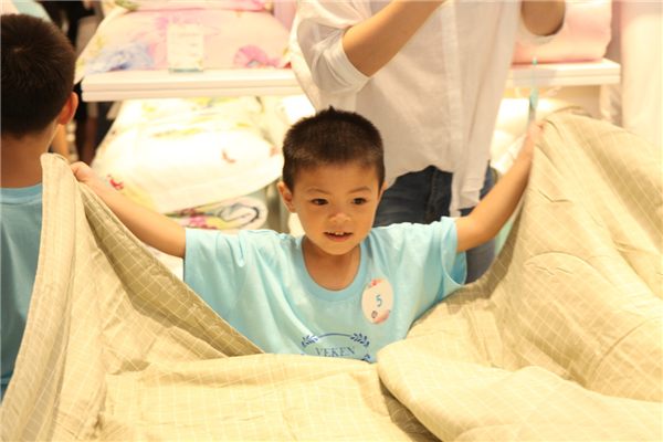 “維科鋪床小達(dá)人”作為此次活動的特色項(xiàng)目,利用維科匯門店自身優(yōu)勢,由店員手把手教授小朋友實(shí)用的空調(diào)被折疊技巧,讓孩子們在玩的同時(shí),學(xué)習(xí)到有用的生活技能,在家也能幫父母做一些力所能及的事情。