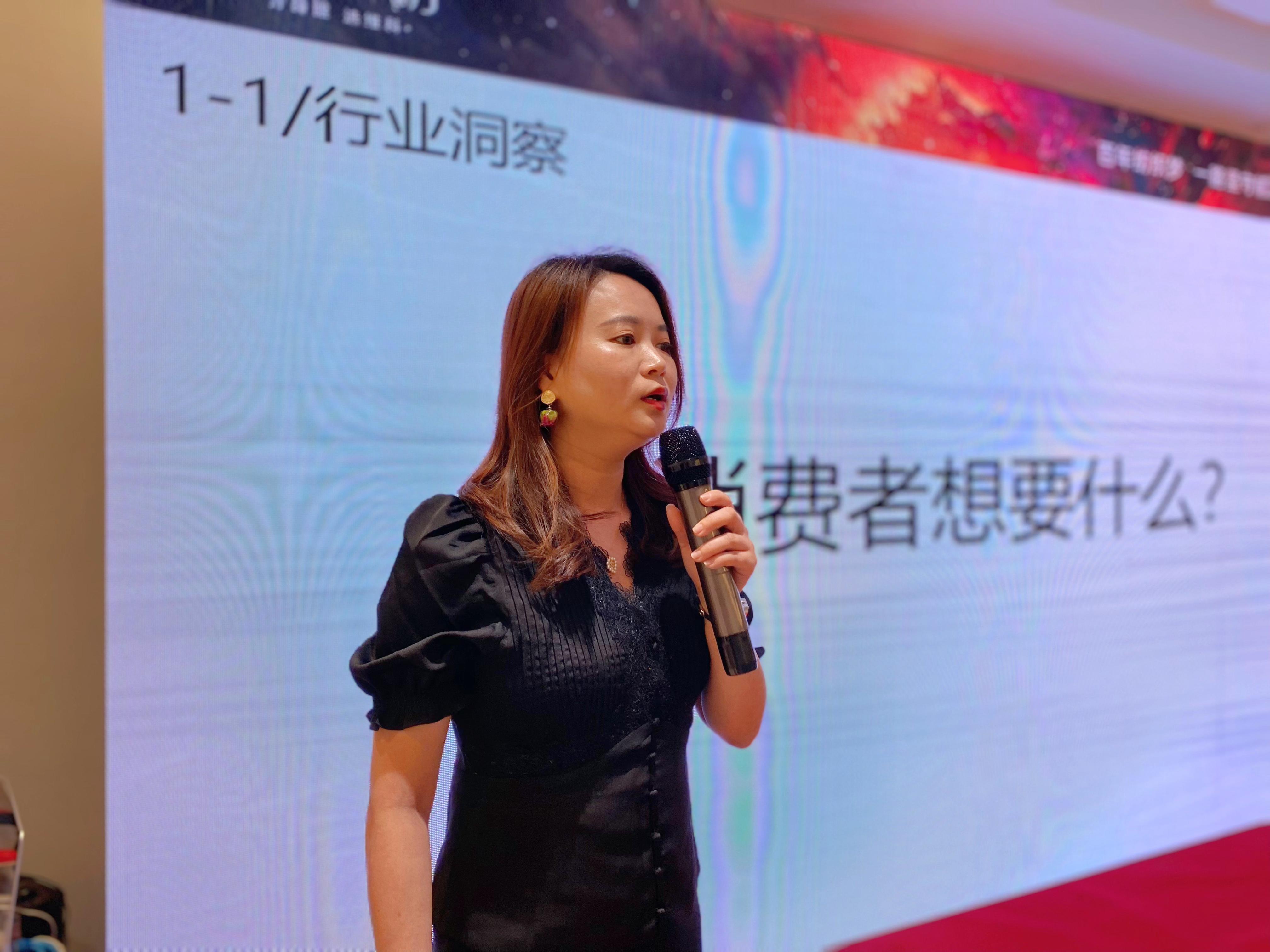 品牌推廣部經(jīng)理畢優(yōu)曉女士從品牌背景、主題發(fā)布、產(chǎn)品發(fā)布和品牌營銷四個方面闡述了秋冬擴大聲量的動作,帶來新品上市方案。