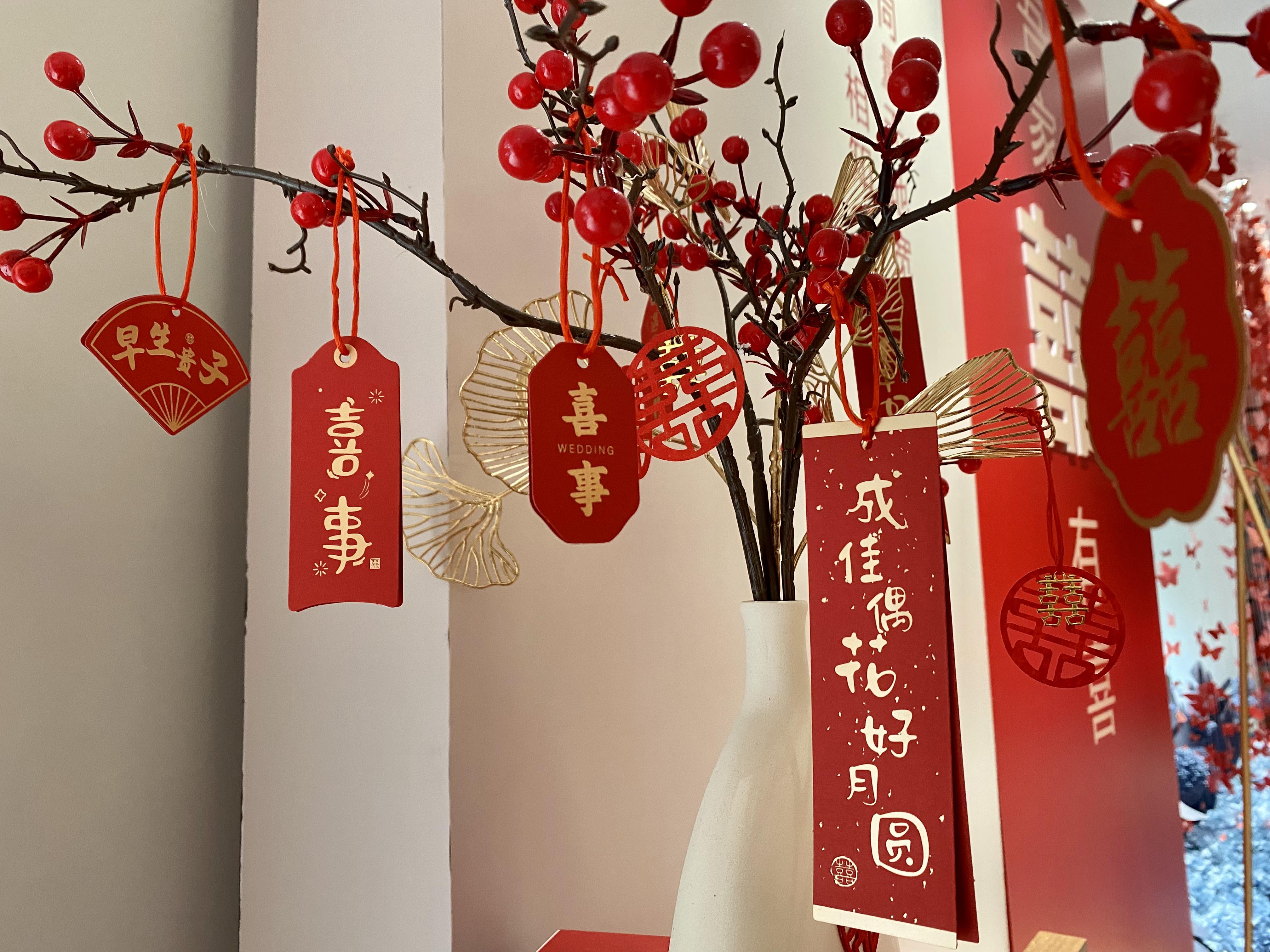 婚慶區(qū)通過精美的垂掛之“囍”、婚禮唱片機、維科喜樹等道具營造出浪漫而喜慶的氛圍,創(chuàng)造了一個令人陶醉的夢境。